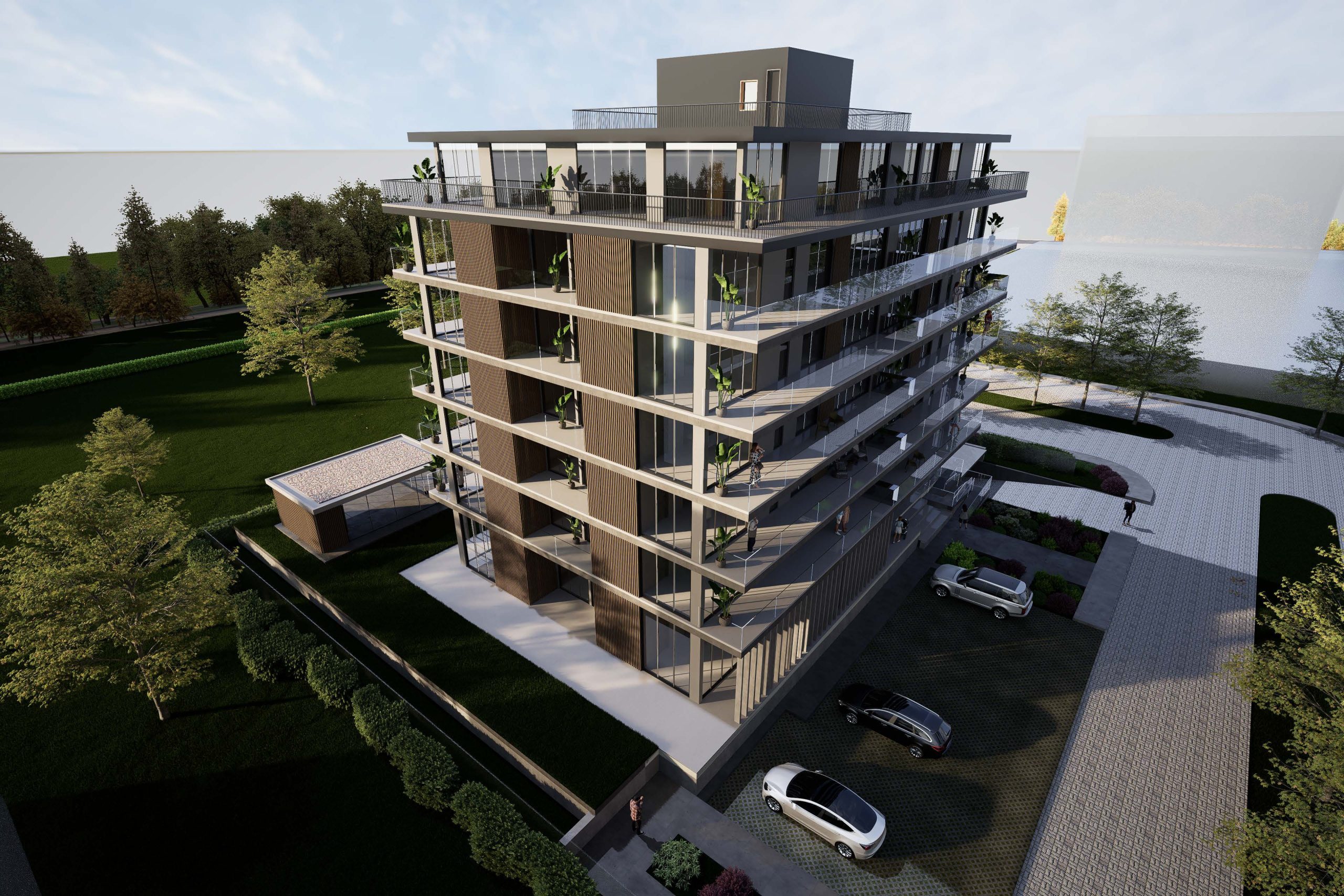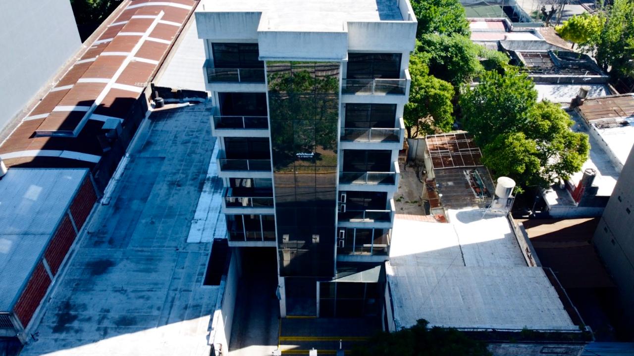 Edificio ubicado en el centro de la ciudad, en una zona de alto tránsito y excelente visibilidad comercial, cercana a bancos, oficinas públicas, comercios y transporte público. El edificio se desarrolla en planta baja y cinco pisos, con una planta baja destinada a recepción y atención al cliente. Dispone de 30 unidades funcionales distribuidas en 5 pisos (6 por planta), cada una con diseño moderno, iluminación natural y balcones al frente y contrafrente con barandas de vidrio templado. Cuenta con 6 cocheras privadas en el edificio. Las terminaciones incluyen cerramientos vidriados de alta calidad, optimizando la entrada de luz y generando espacios confortables y funcionales.